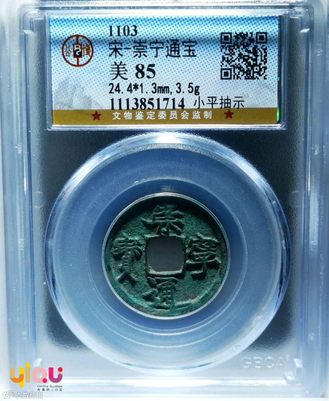 LOT602 崇宁通宝 小平抽式 公博评级 美85 尺寸:24 mm diam.