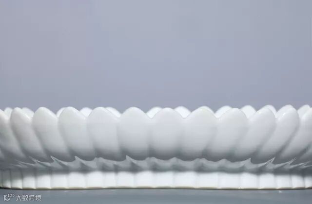 此件菊瓣盘,釉色洁白,胎质温润。盘壁呈菊花瓣状,造型秀美端庄,线条优美舒畅,配以匀净莹润的釉色,显示了雍正时期制器静雅纤丽的艺术风格及高超的制瓷水平。虽后世乾隆朝亦有制作,但难及雍正本朝形巧色美。