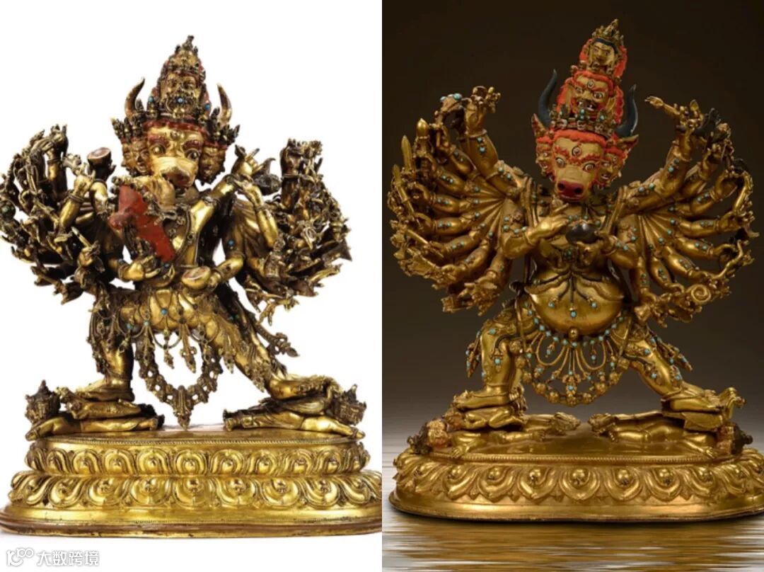 左:参阅1,大威德金刚,高30厘米,香港苏富比2017秋拍,lot3133,估价2500-3000万HKD。