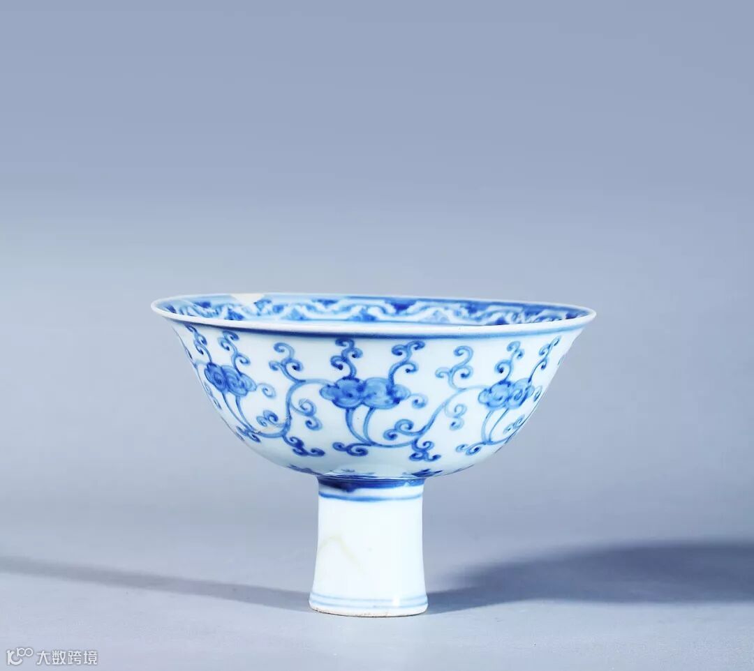 明 成化 青花内瑞兽外缠枝花卉纹高足碗