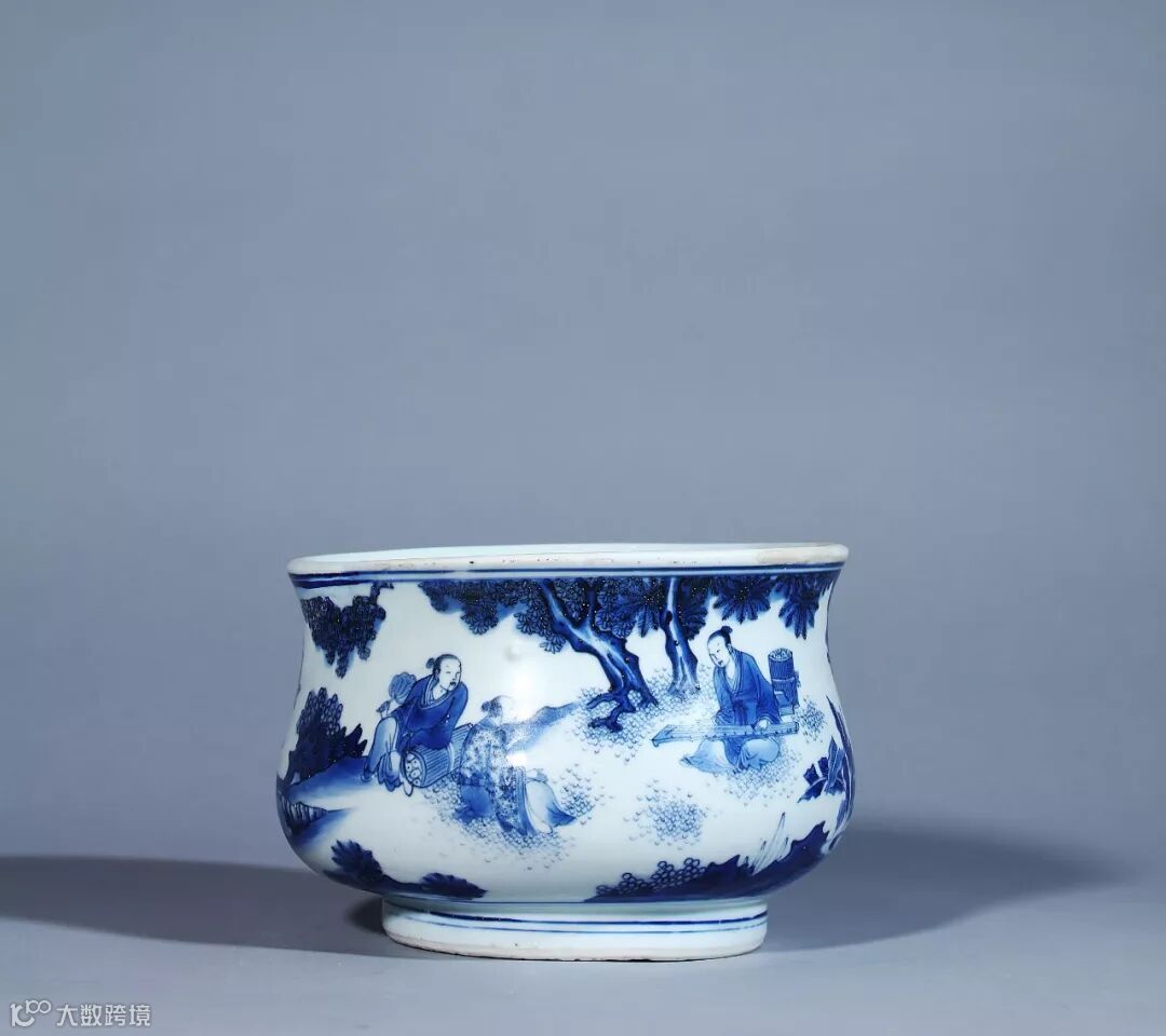 明 崇祯 青花高士图香炉