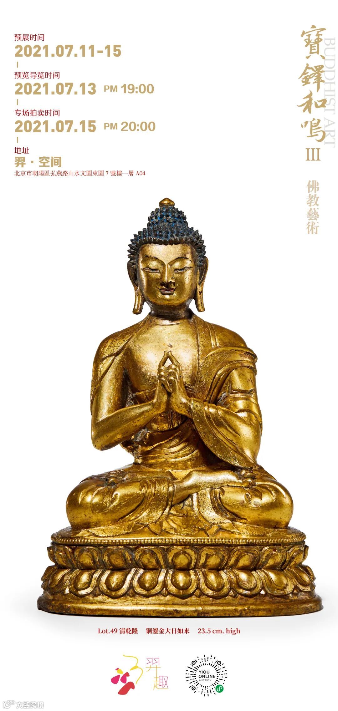 2021北京羿趣国际春季拍卖会艺术周“宝鐸和鸣Ⅲ”——佛教艺术专场,延续经典,不断精进,为诸位藏友集中呈现精心征集所选铜器、杂项、佛造像等佳品共计52件,品类颇丰,质量甚佳。试想,于一场专场中呈现如此丰富之精品,可谓一绝。北朝旷世杰作《洛阳伽蓝记·永宁寺》中有言:“宝鐸和鸣,鏗鏘之声闻及十餘里。”此佳句流传千古,诵读之际,不由引人联想至空幽肃穆之圣境,此系列专场便取此意,由此命名,寄托佳思。此次拍场已是“宝鐸和鸣”专场的第三次实践,正所谓“路漫漫其修远兮”,专场于一次次实践中精益求精、愈发成熟,专场持续关注广大藏友的炙热目光,在专业知识的支持下,不断拓展铜器、杂项领域的精美佳品征集,誓为诸位于艺术周中呈现一场别样的饕餮盛宴。