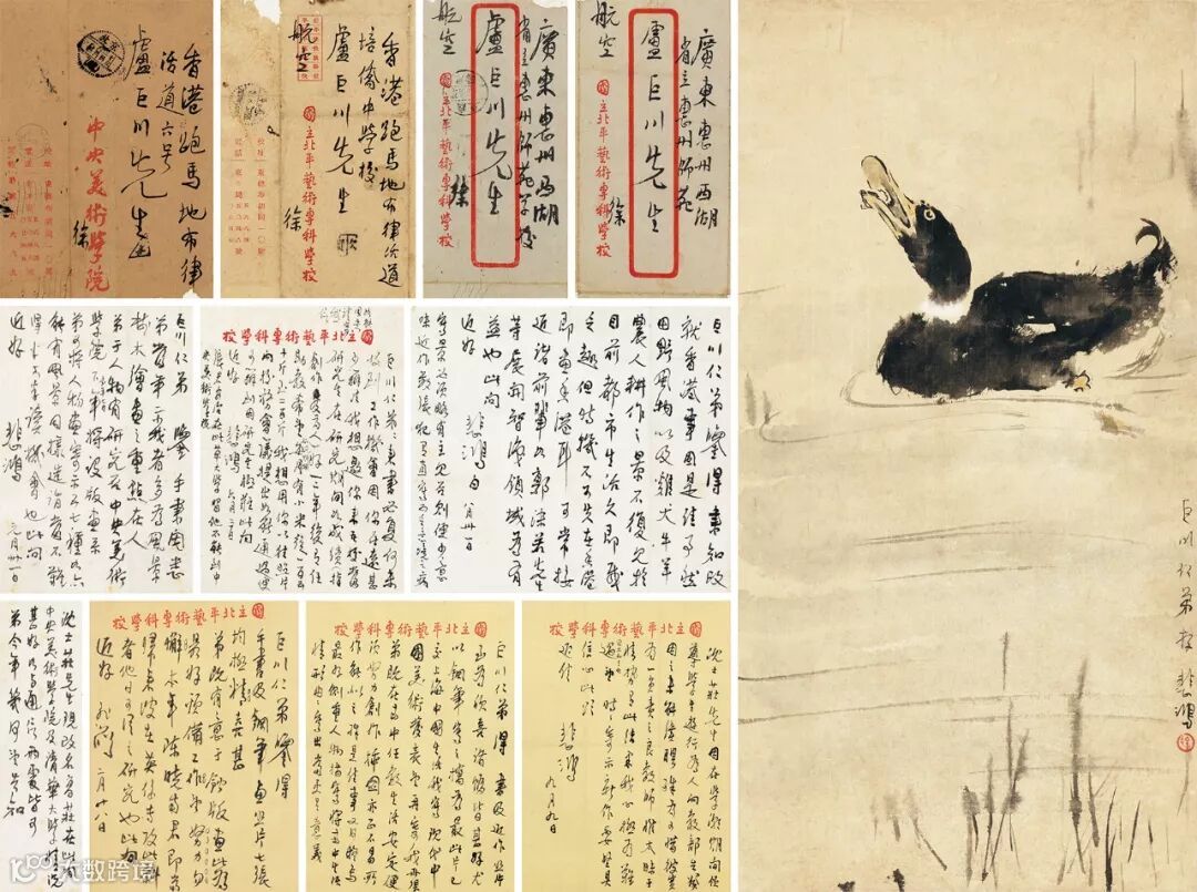 8.Lot 759 徐悲鸿 《鳬鸭》 信札五通附四函