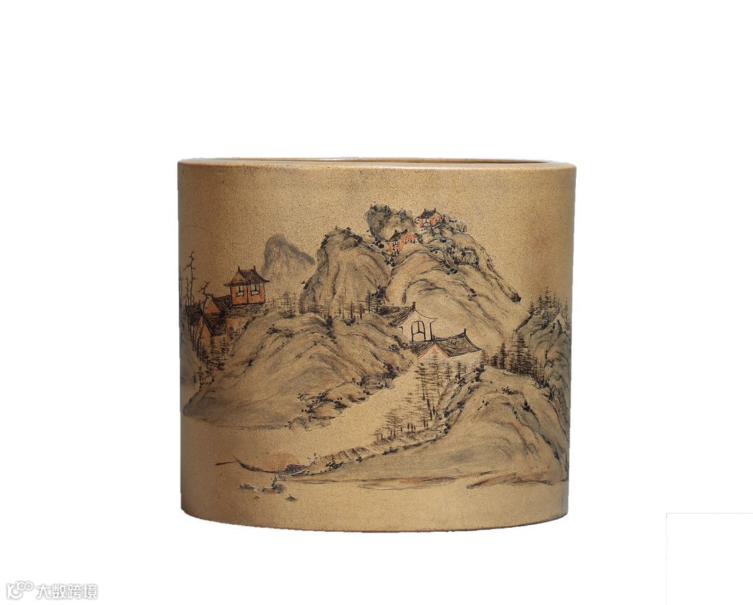 10.Lot 314 清乾隆 杨季初制紫砂泥绘水村图笔筒