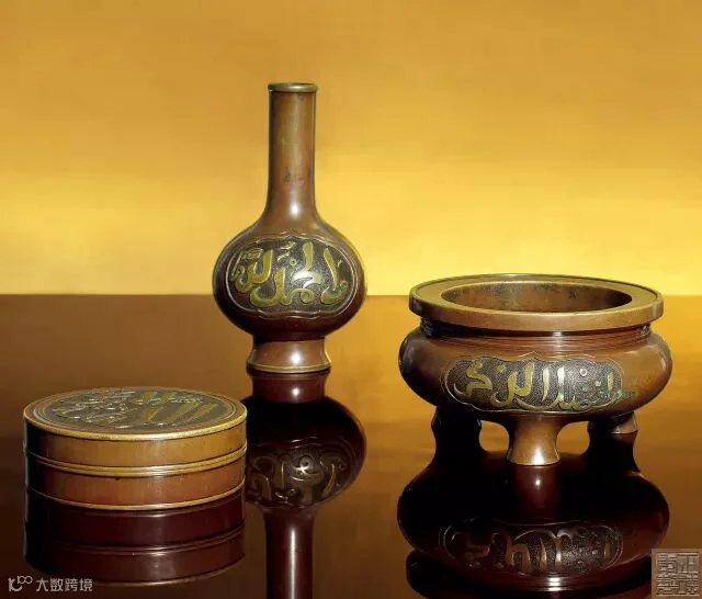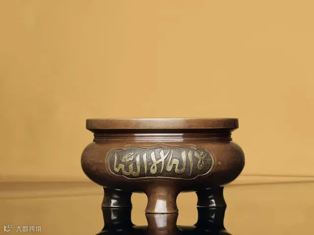 三器的形制、做工、皮殼協調統壹,阿拉伯文書寫結體中正,筆劃深峻,壹絲不茍,為正德官鑄珍品,爐瓶盒三者齊備頗為珍罕。