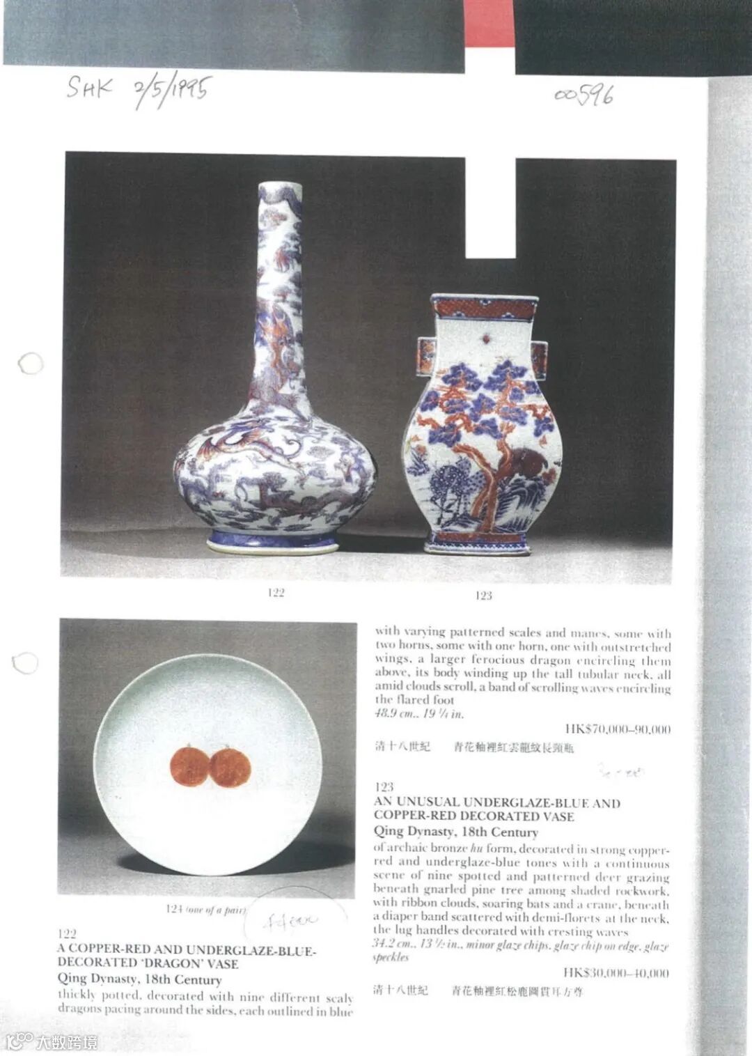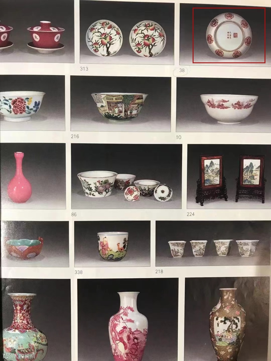 拍品撇口,弧腹,圈足。盘外壁分饰七团龙纹,分布规整,描画细腻,龙呈侧身置于祥云之间,极富装饰性,华丽而生动,盘内暗刻花鸟纹饰,灵活形象。其整器纹样紧凑美观,表现出清光绪时期红彩瓷器的艺术风格。