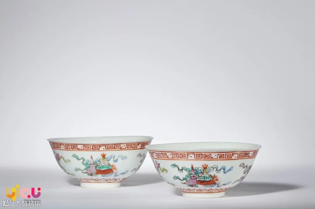 粉彩八宝纹碗一对