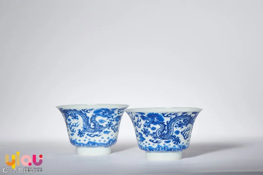 LOT6 清晚期 青花云龙海水纹杯一对(细节图)
