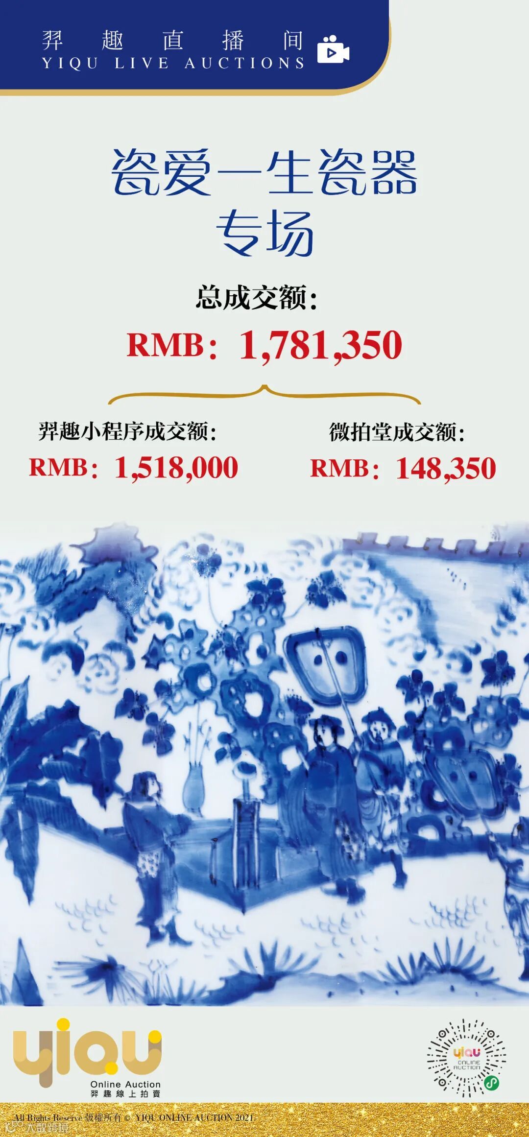 羿趣·瓷爱一生瓷器专场负责人王玉杰先生根据自身丰富的经验整理出了一场优质拍卖会,拍品颇具文化、历史、艺术及经济价值。再者,王先生在古玩行业里有着非常不错的口碑,因此备受广受到业界的广泛关注,才促成本专场能取得如此亮眼的成绩。