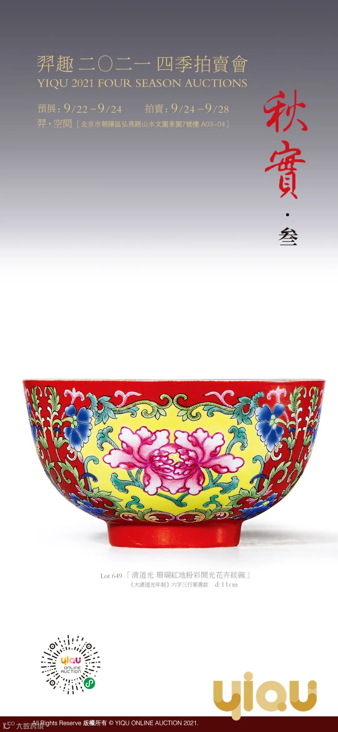 自乾隆时始,奢靡成为一种风尚,并且愈演愈烈,造成封建统治阶级更加疯狂地压迫与掠夺人民,民众反官情绪日益高涨,形成严重的统治危机。因而,道光帝的崇俭体现在整顿吏制、漕运、盐政等各个方面,对扭转奢靡之风发挥着重要作用。因而,在道光帝统治时期,奢侈浪费行为得到有效控制,作为奢靡风气重要载体的工艺美术品制作亦步入显著下滑轨迹,并且,整体风格从追求华美精致而向朴素无华转变,御瓷制作亦包括在内。本次“秋实·叁:瓷器工艺品”中有一只清道光的珊瑚红地粉彩开光花卉纹碗。