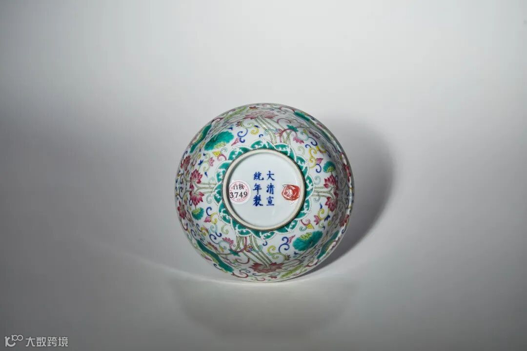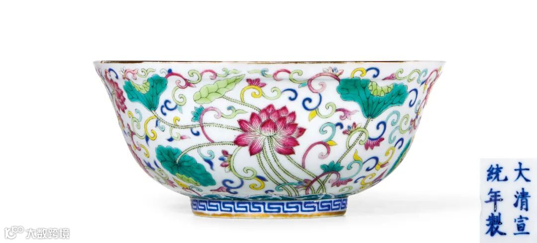 此碗是晚清官窑标准品类,同治、光绪、宣统皆有烧造,内壁纹样寓意“为官清廉”;外壁莲茎深固于淤泥中,花叶繁茂,寓“本固枝荣”,有警醒之意。