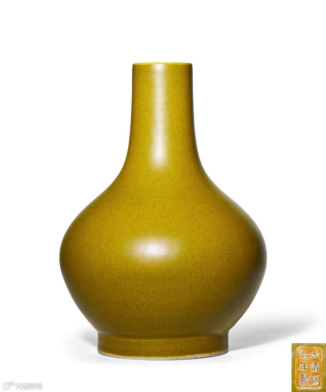 拍品小圆口,细长颈,坡肩,扁圆腹,短圈足,器形端庄秀美,形如荸荠造型,故称之“荸荠瓶”。瓶内外通施茶叶末釉,釉面呈色黄绿而不透明,并带有黄色的星点,颇似茶叶的细末,古朴清丽,深沉凝重,极具古意,耐人寻味。由于烧制时温度不同,茶叶末釉又有蟹甲青、鳝鱼黄、黄斑点、茶叶末等多个品种。