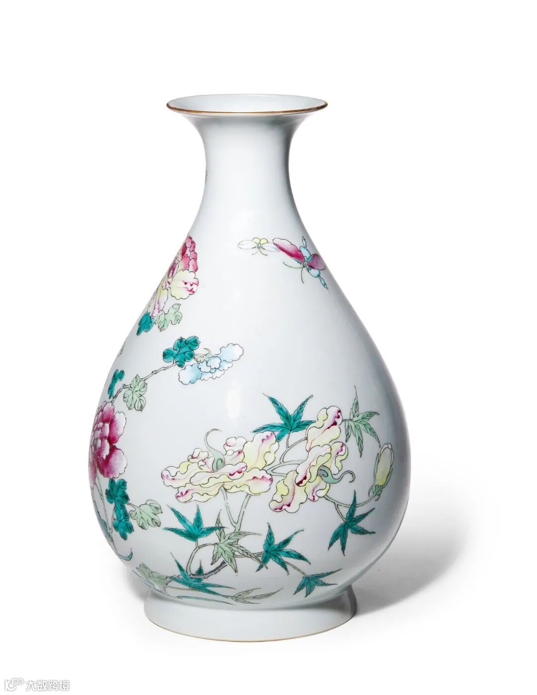 玉壶春瓶为明清瓷器的典型造型,许之衡《饮流斋说瓷》记:“玉壶春口颇侈,项短腹大,足稍肥,亦雅制也。天青、积红者尤居多数,此式大半官窑,甚少客货,而官窑又大半纯色釉也”。