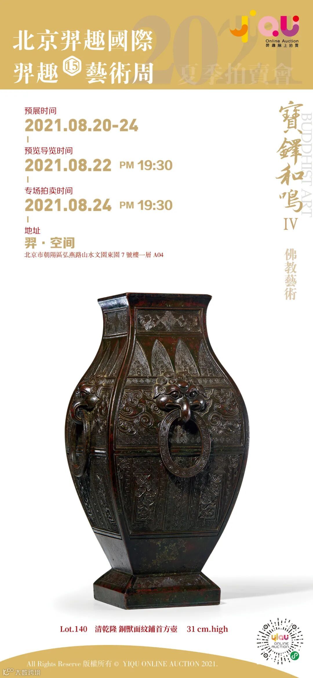 2021北京羿趣国际春季拍卖会艺术周“宝鐸和鸣Ⅳ”——佛教艺术专场,延续经典,不断精进,为诸位藏友集中呈现精心征集所选铜器、杂项、佛造像等佳品共计42件,品类颇丰,质量甚佳。