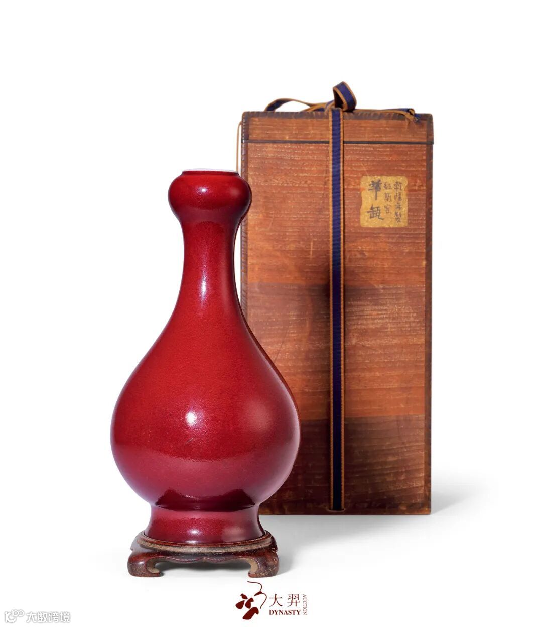 LOT208 清乾隆仿宣德红釉蒜头瓶(带盒图)