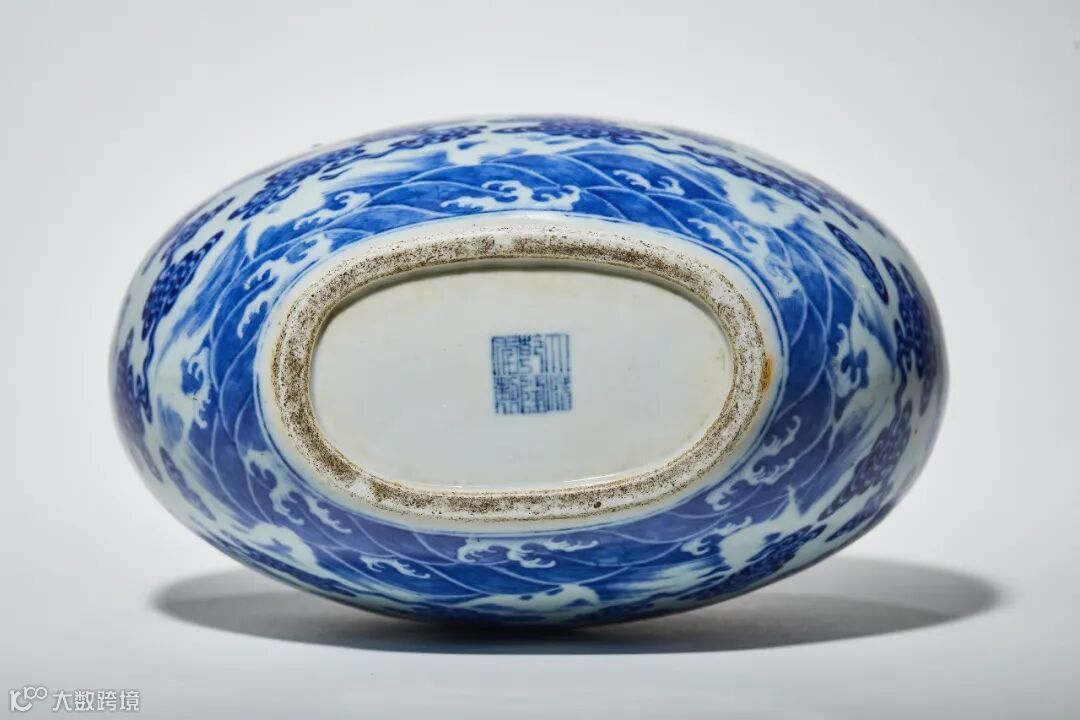 LOT584清乾隆 青花暗刻万蝠流云图扁瓶(底部图)