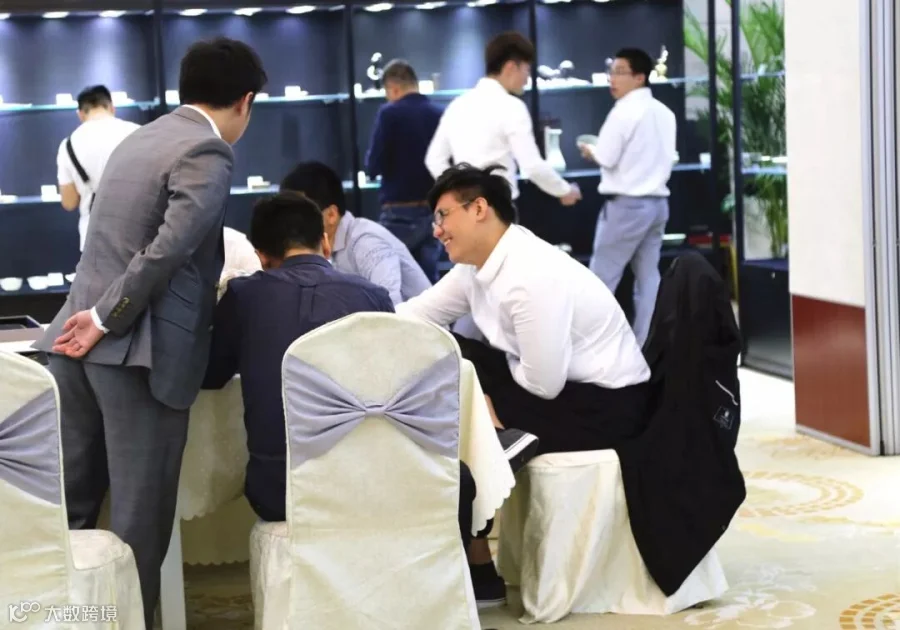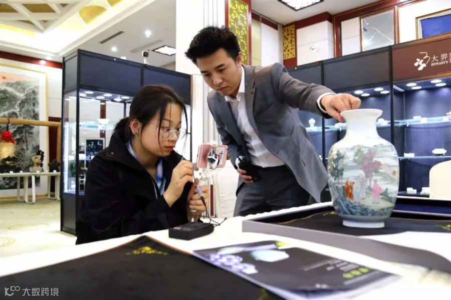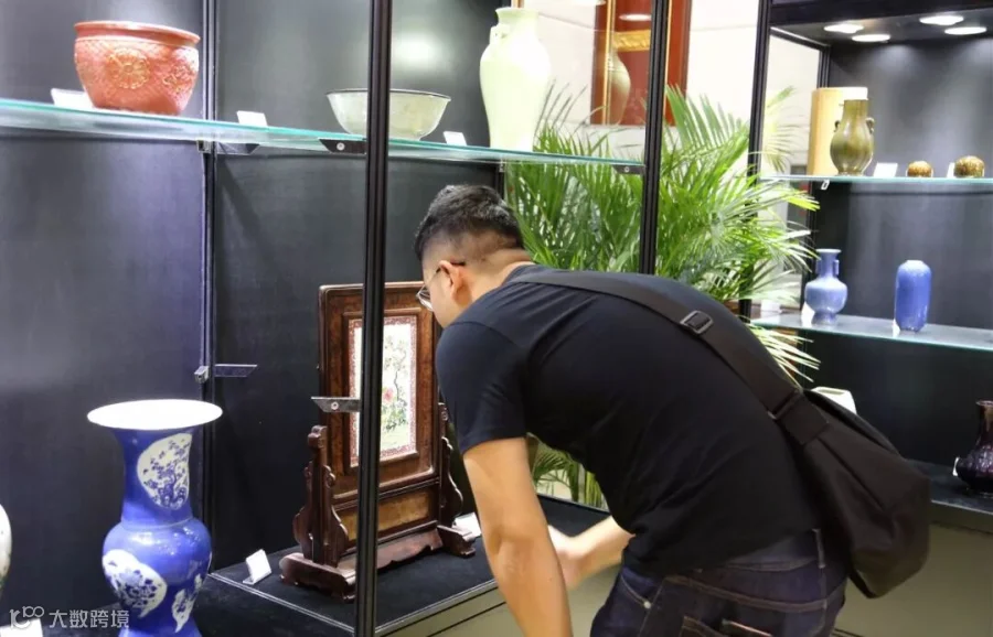 来宾仔细观赏心仪的藏品