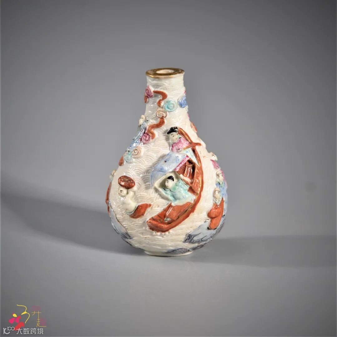 粉彩雕瓷白蛇传鼻烟壶 高:70mm(不带盖)
