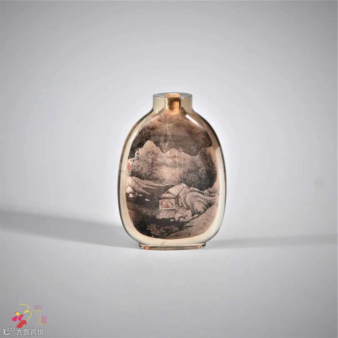 陈仲三茶晶内画山水雪景图鼻烟壶 高:70 mm.