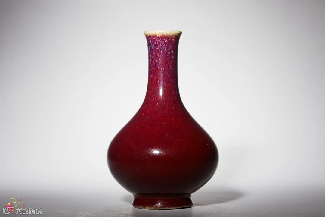 窑变釉杏圆贯耳瓶 款识:“大清光绪年制”六字双行楷书款 高:29.7 cm. 参阅:1、《故宫博物院藏古陶瓷资料选萃•卷二》,紫禁城出版社,2005年,页341,图311 2、《上海博物馆藏品研究大系•清代雍正—宣统官窑瓷器》,上海人民出版社,2014年,页272-273,图5-1 3、《故宫博物院藏文物珍品大系—颜色釉》,上海科学技术出版社、商务印书馆(香港)有限公司,1999年,页207,图186