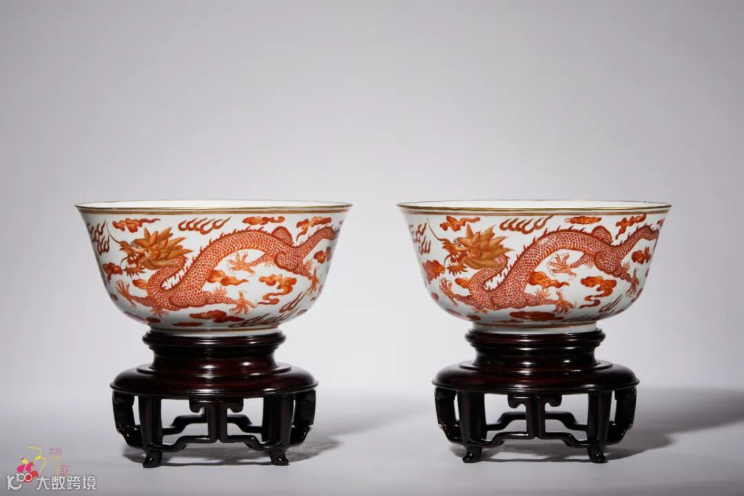 矾红描金云龙纹宫碗一对 款识:“大清光绪年制”六字双行楷书款 直径:18.2 cm.
