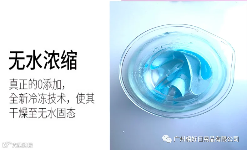 冻干面膜,又称冻干面膜,冻干固态原液面膜等,是指将皮肤有益成分、增稠剂、保湿剂等成分,与膜布纤维充分融合后,使用真空冷冻干燥的方式,将配方中的水分进行升华,形成固态干膜形式的面膜,其特点在于对于有益成分活性的保持,以及无需添加防腐剂,从而提高使用安全性的特点。