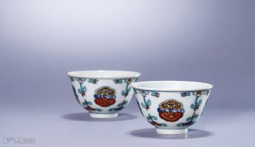 本次秋拍《如日之升》專場也有道光朝仿明成化鬥彩的小杯一對。