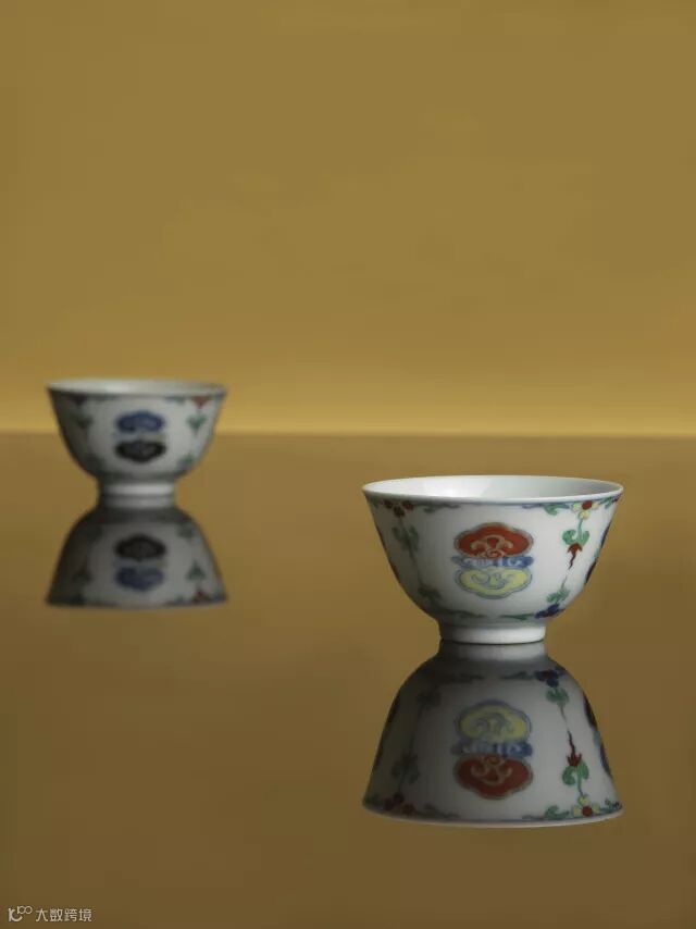 此器為本期秋季拍賣《大羿龍焉》專場重推之拍品。杯微撇口,深腹,圈足。胎質堅致細膩,白釉清透,外壁以青花勾線填以五彩,繪四組兩兩相對的團狀靈芝紋,間以上下對稱的花草紋,設色雅麗,素雅脫俗,秀美玲珑。雖仿成華,較之更為豔麗奪目。