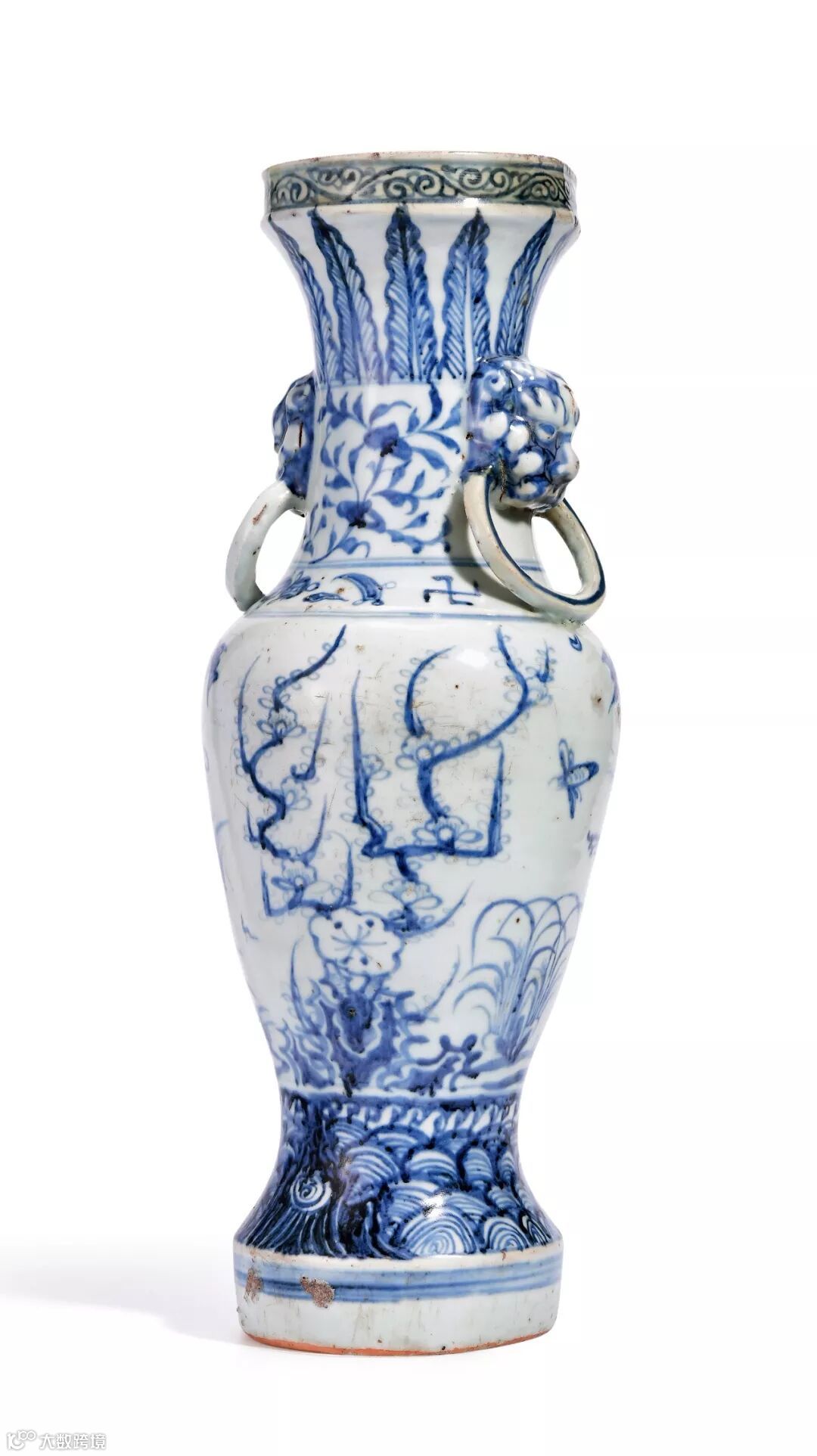 本拍品与唐英学社明代正统、景泰、天顺三朝景德镇窑业特展展出的正统青花云龙铺首衔环供瓶(一对)造型极为相似,此对瓶为宁王朱权专门订造供奉在新建县南极长生宫内,与之对照更显本拍品珍稀。