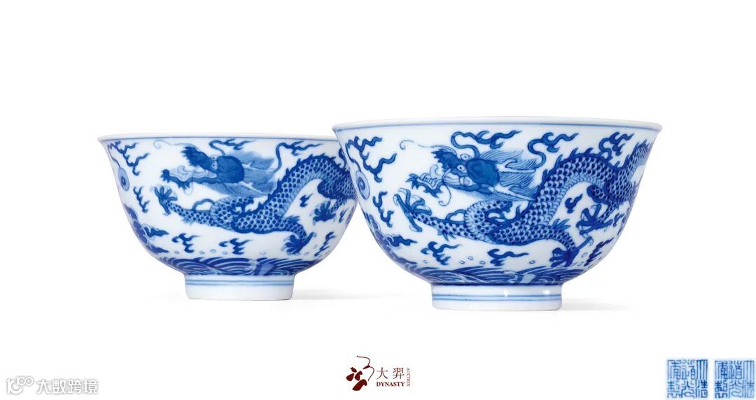 青花双龙戏珠纹碗一对 款识:“大清光绪年製”六字双行楷书款 直径:11 cm. 记录:香港苏富比,1994年5月4日,编号181