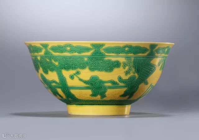 婴戏纹这种题材在瓷器上运用最早见于唐代的长沙窑,宋代的磁州窑和景德镇青白瓷上已经运用娴熟。后至明代宣德时期,特别是到了正德、嘉靖时期才广为流行,一直到清代康雍乾时期的彩瓷装饰中大量出现,到了清中后期发展到百子嬉戏,甚至做到了千人千面、神态各异的艺术巅峰。