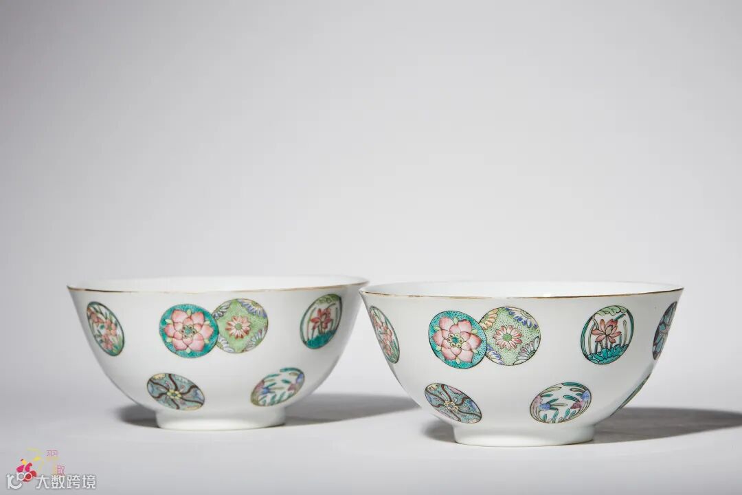 粉彩皮球花纹碗一对 款识:“光绪年制”四字双行楷书款 直径:14.5 cm.