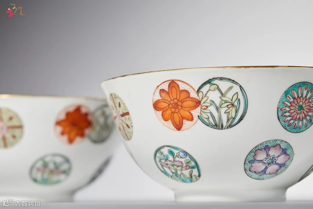 皮球花为雍正朝创制的新纹饰,是清宫御用的尊贵装饰,以不规则的布局与丰富的色彩来传达一份别致而清新的华贵美感。本对拍品形制隽巧可爱,胎质细腻洁白,釉面温润如玉。外壁粉彩纹饰色彩妍丽,画工精湛细致。所绘皮球花形状各异,变化多端,无一雷同。纹饰布局疏密有致,或两两成对,或三者成簇。颜色更是缤纷绚丽,将粉红、淡黄、翠绿、天蓝、褚褐、珊瑚红、玻璃白等颜色发挥到极致,于莹润的釉色映衬之下,绽放出一份华丽而含蓄之美,静穆地传述着“色与空”、“动与静”的禅家之道。