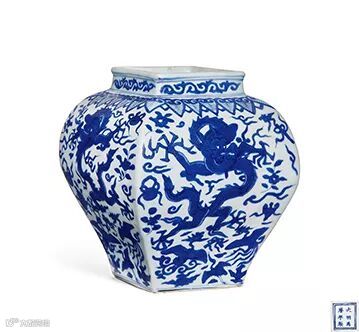 明万历 青花云龙纹四方罐