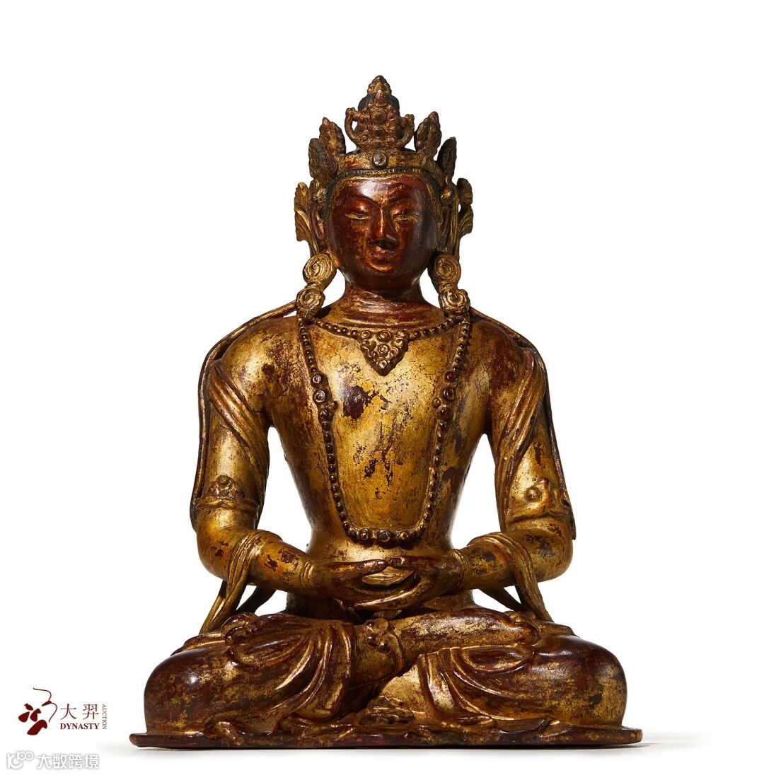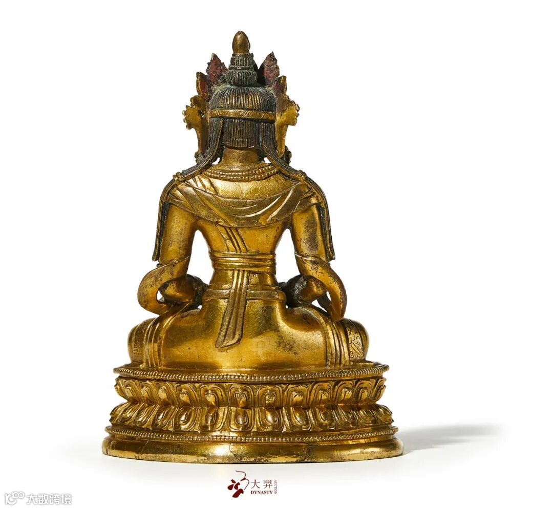 康熙时期宫廷对藏传佛教支持有加,宫廷佛教造像亦于此时期达到兴盛。康熙造像铜质厚重,铸工精良,深受后人之赞誉。此时期造像内容多以无量寿佛为主,而此件拍品便是其中极具代表性的一件精品佳作。