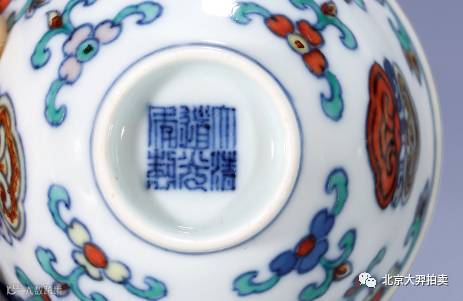 此杯敞口,弧腹,圈足。底青花雙方框內書“大清道光年制”六字雙行楷書款。