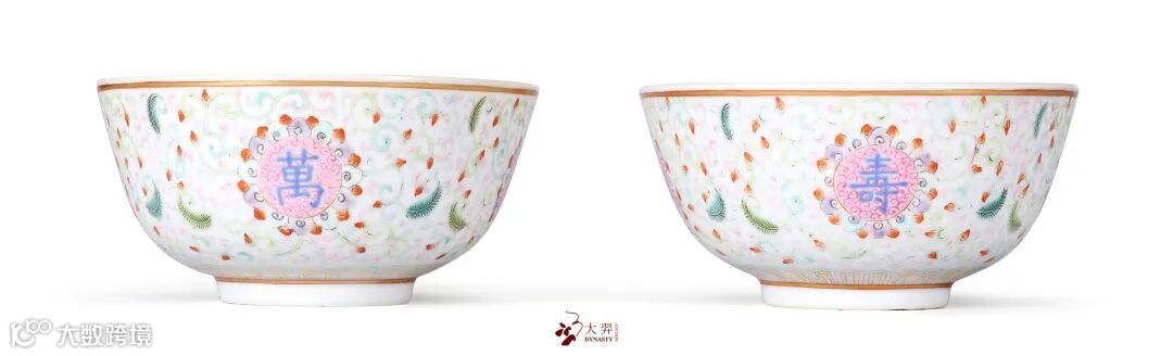 LOT23 清宣统 粉彩万寿无疆纹碗一对(另面图)