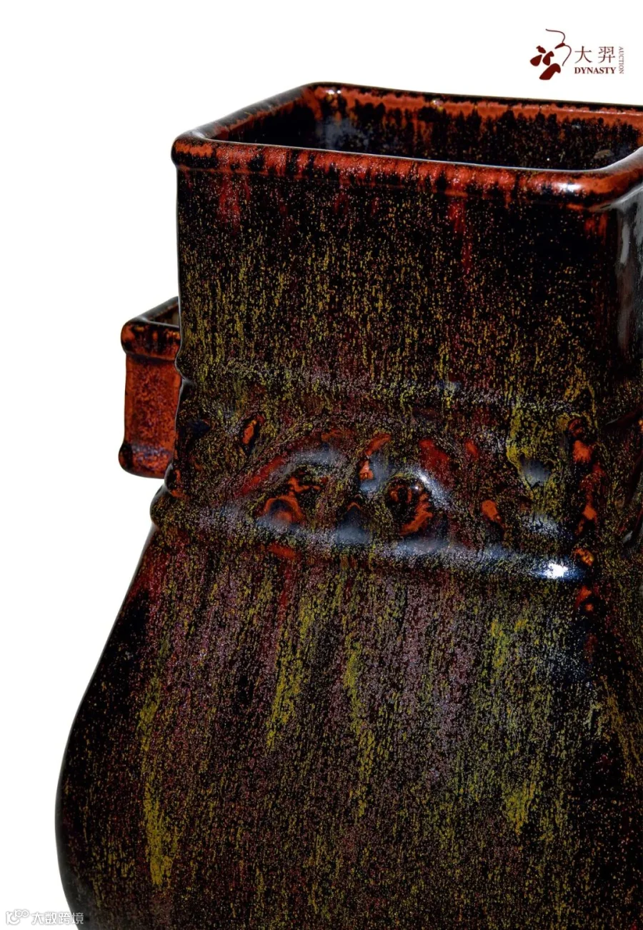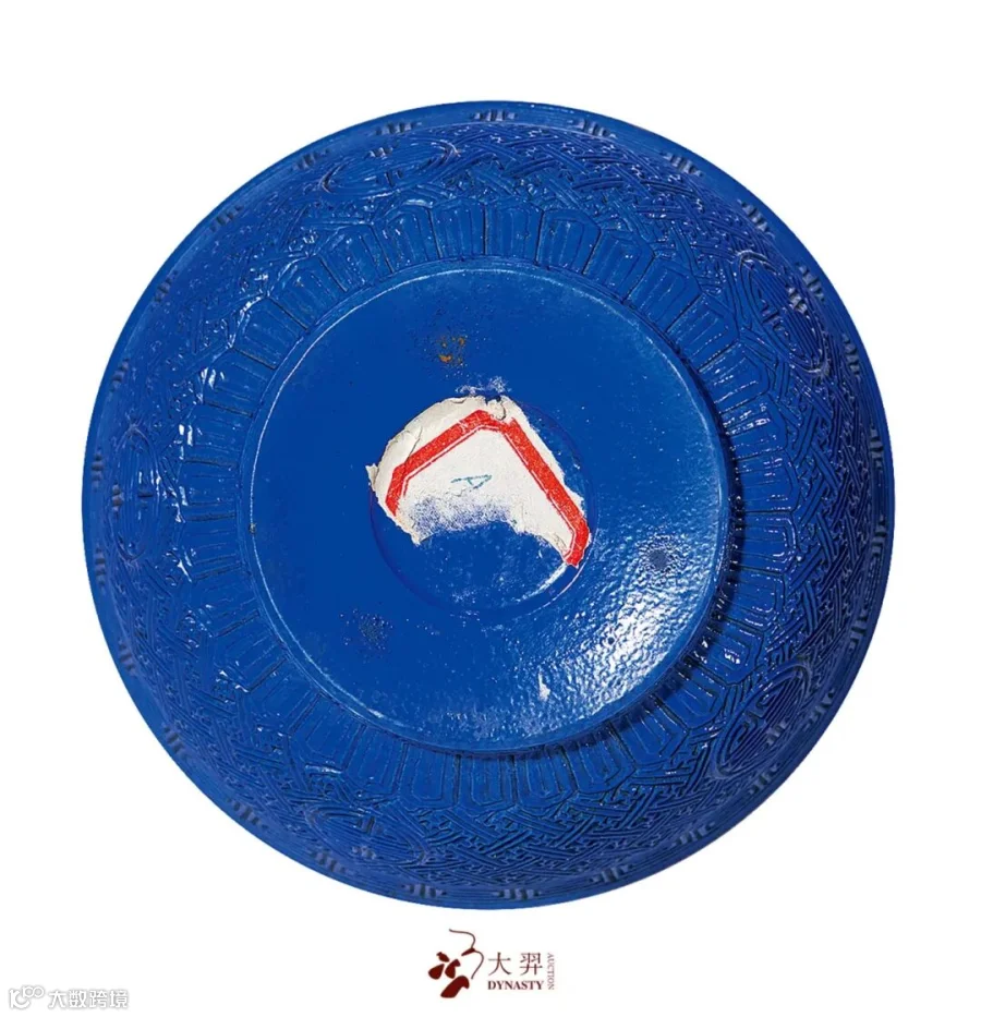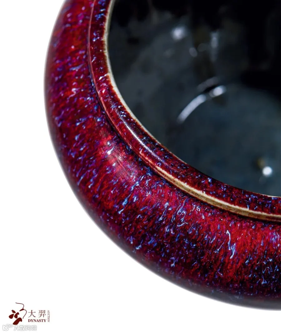 此种装饰风格亦见于北京故宫博物院所藏北宋汝窑三足樽,深得宋瓷精髓。其底足露台处施褐色护胎剂,以慕仿宋瓷“铁足”之效果,惟妙惟肖。据督陶官唐英《陶成纪事碑》中所载,“仿铜骨鱼子纹汝釉”于“新创仿古採今之各式釉色五十七种”之中位居第三,可见这一品种的重要地位。”仿古须宗雅则,肇新亦有渊源“,唐英此语用来形容本件拍品恰到好处。