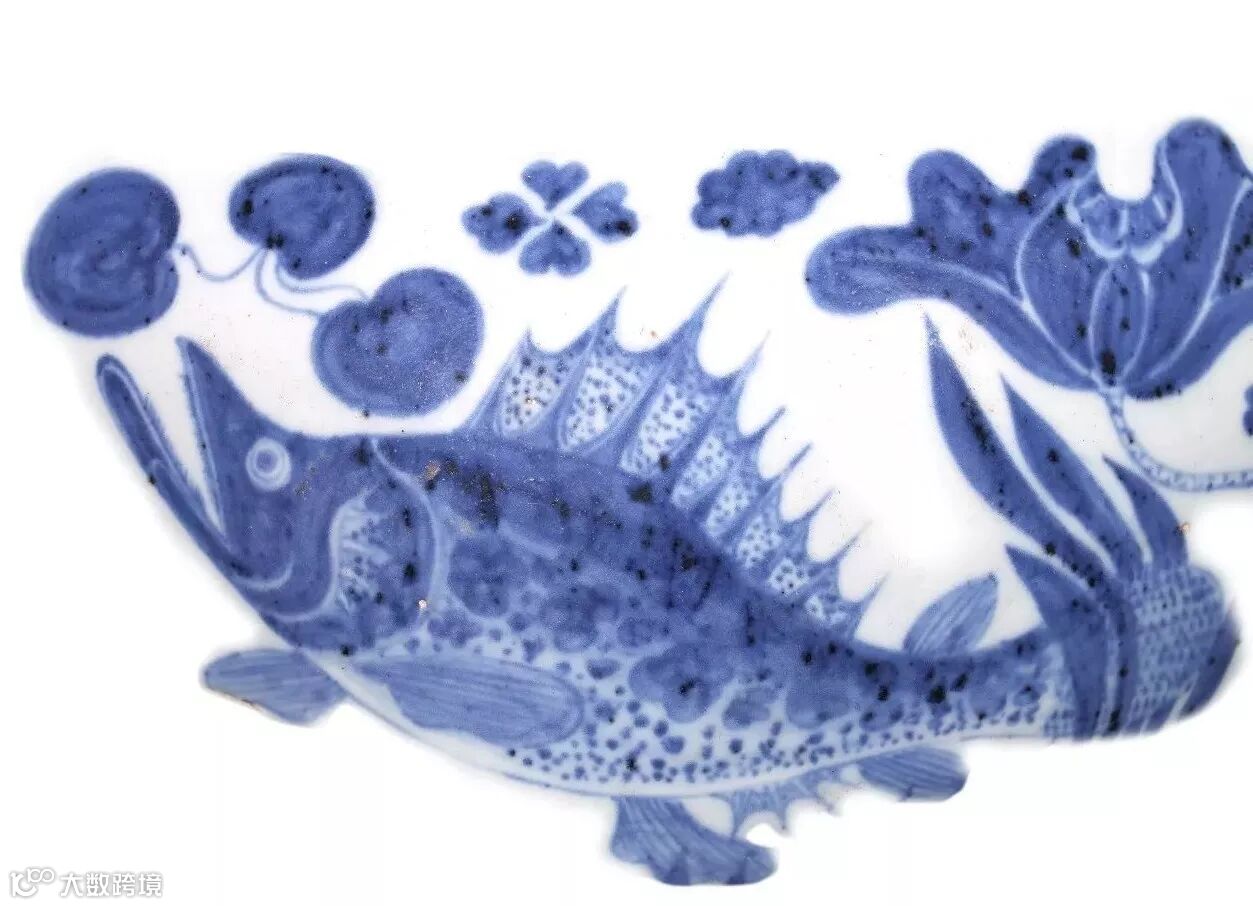 鱼藻题材在宋代刻划类瓷器中即以出现,形象塑造较为抽象,元代青花作品描绘则更为写实。