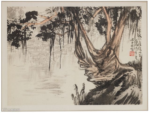 人家近水占榕荫。此在岭南往往有之,俨少写。钤印:俨少印(白)