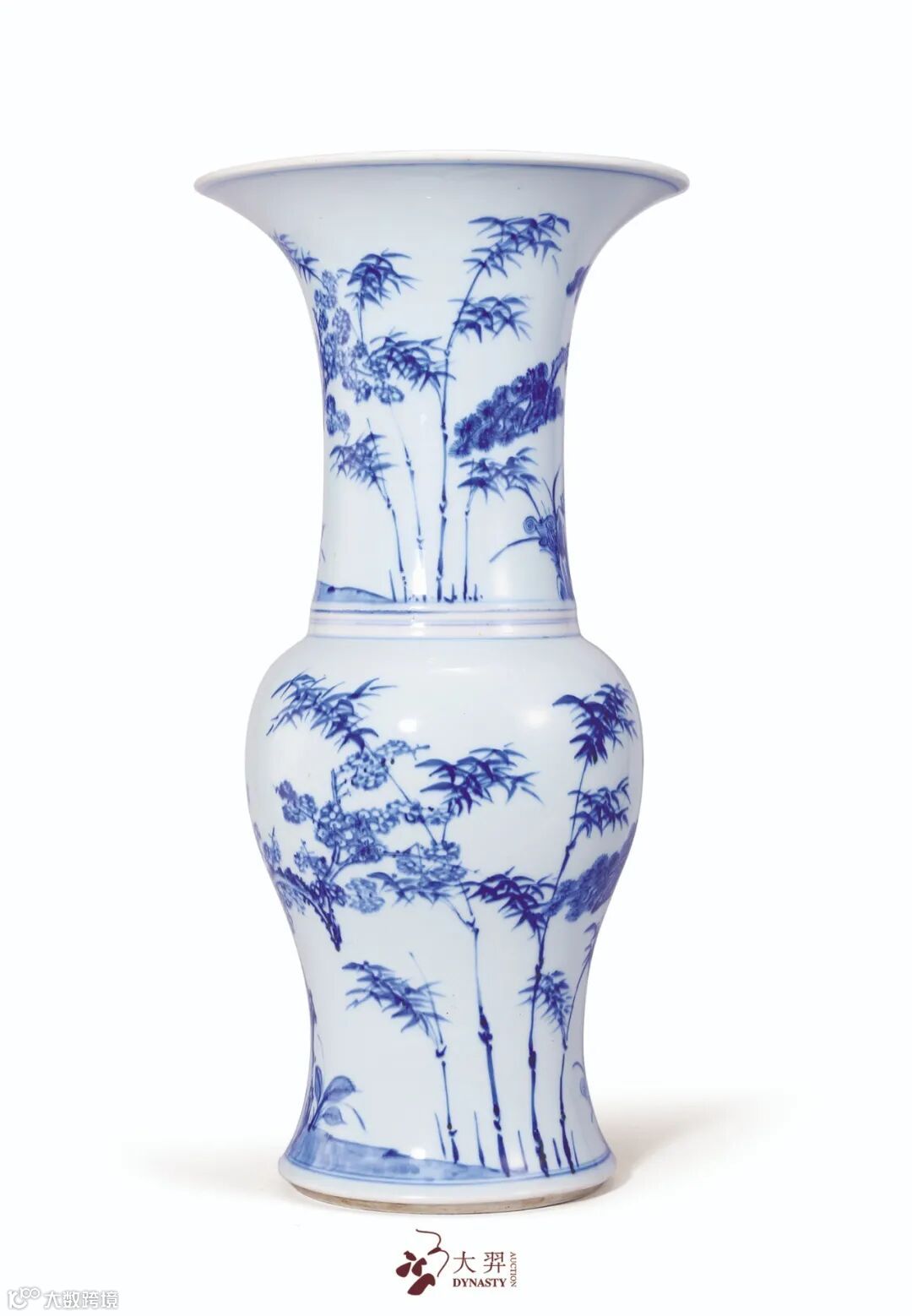 青花岁寒三友图凤尾尊 高:45.5 cm.