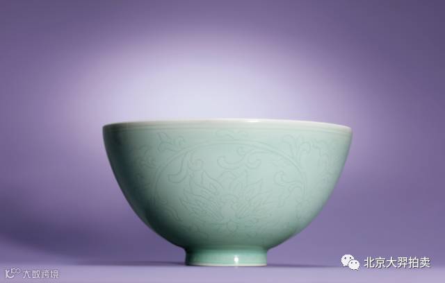 此碗敞口,深弧腹,圈足,通體滿施青釉,外壁刻以纏枝蓮紋為飾。其刻工嫻熟,刀法流暢,紋樣清晰,質感強烈,所見花葉輕盈舒展,神采奕奕,無不彰顯出工匠以刀代筆的非凡造詣。其造型輕盈秀麗,釉質溫潤如玉,釉色粉嫩,紋飾玲瓏剔透,修足規整。其品質上乘,氣度嚴謹,當屬朱明永樂時期影青瓷器之上乘佳器。