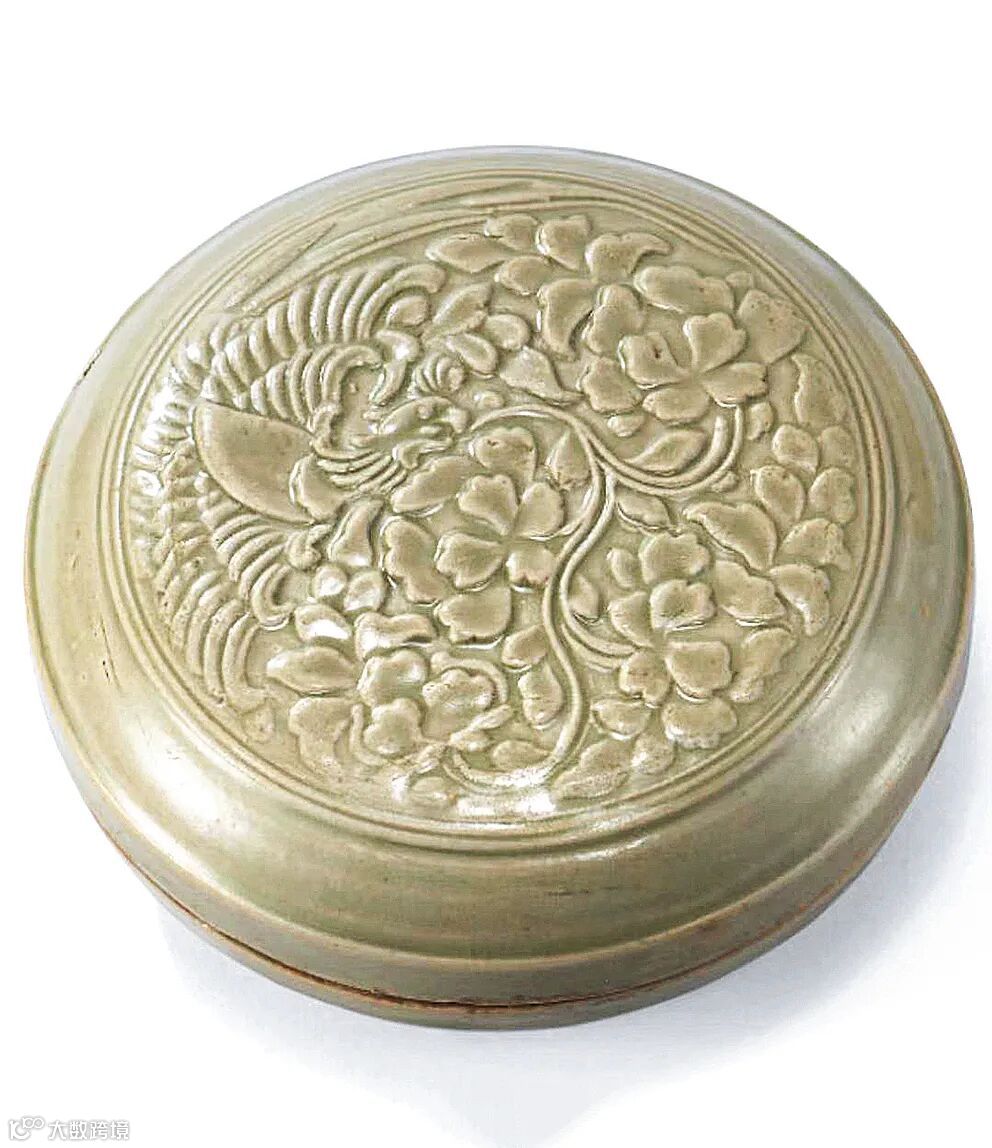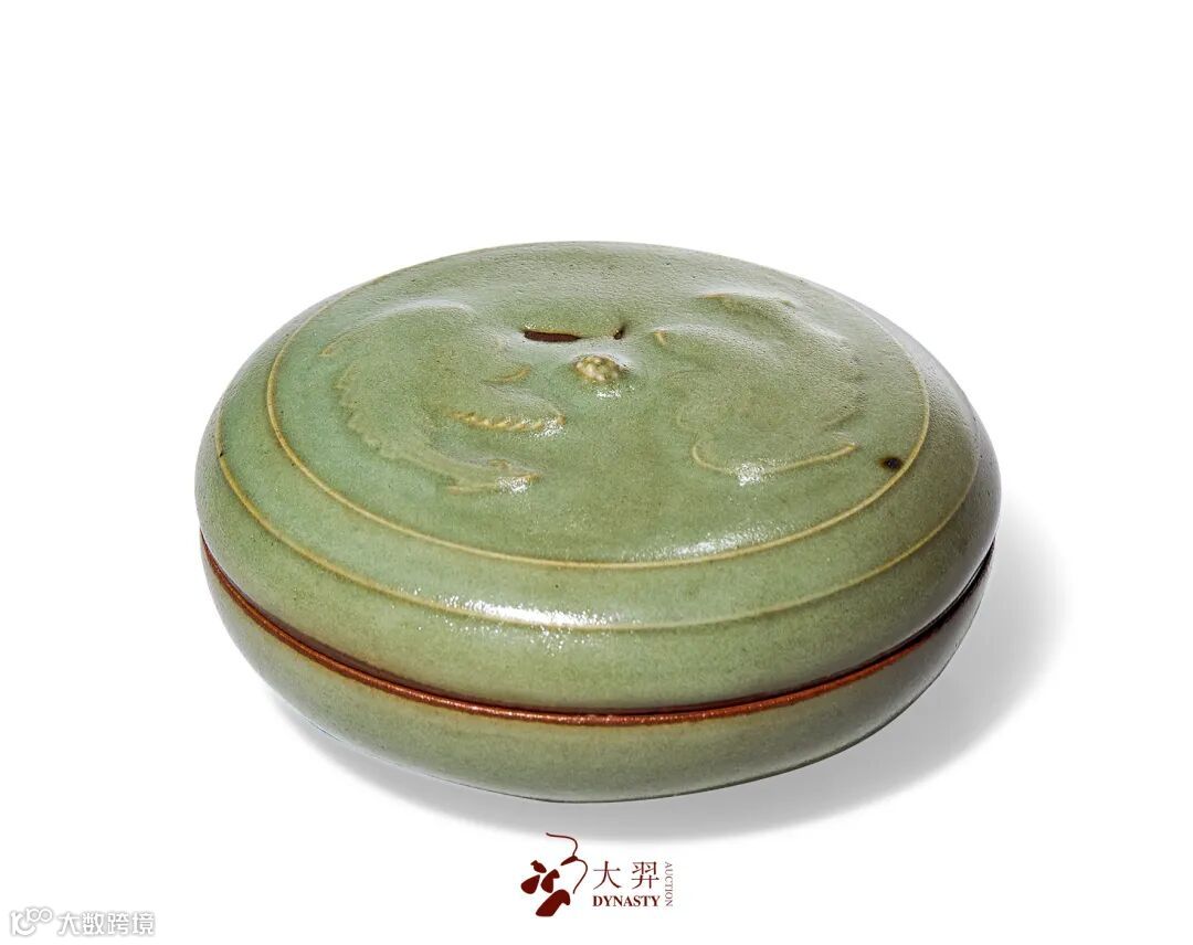 仿耀州窑模印双凤纹印盒 直径:9.2 cm. 来源:香港藏家旧藏
