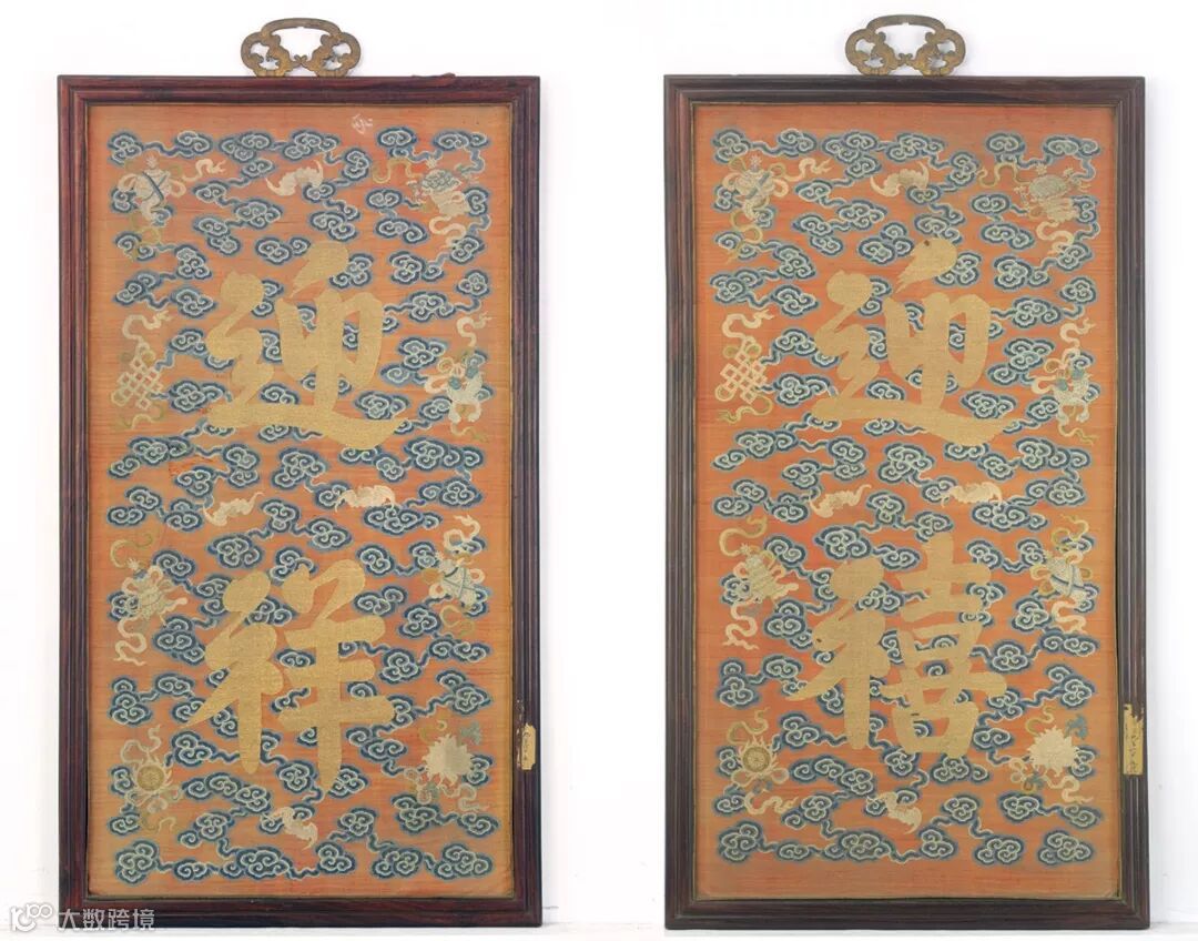 清 缂丝 紫檀木边《迎祥》挂屏(故宫博物院藏)