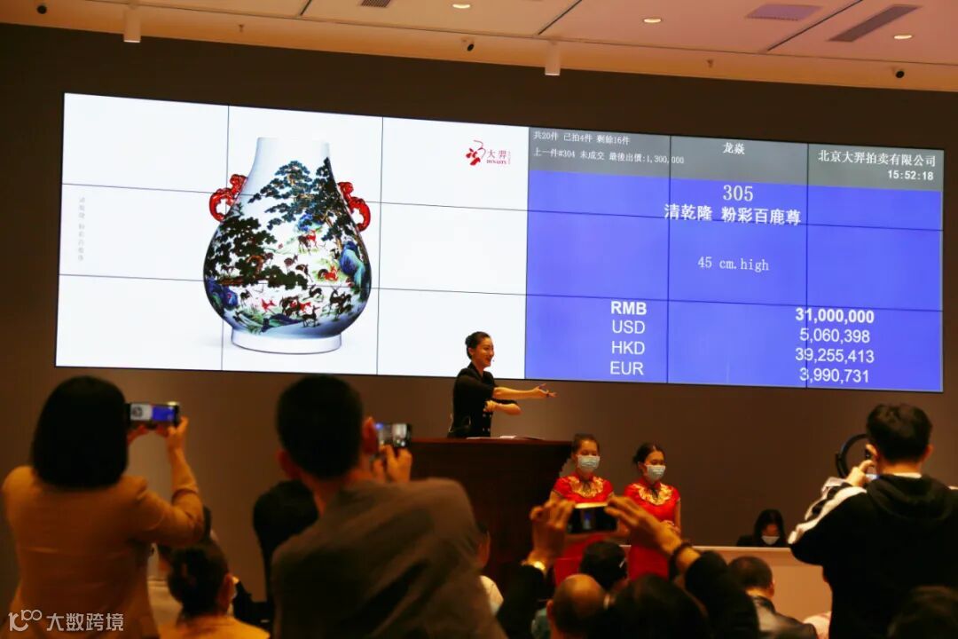 “龙焱”专场是本次拍卖的精华,有多件千万的高价作品。清乾隆 粉彩百鹿尊在预展期间就牵引了无数客人的目光,在它面前驻步许久,其文物、历史、艺术价值得到公认,最终在18日,借助大羿找到知音人,以35,650,000元成交。龙焱专场的其他拍品也同样精彩,酣畅淋漓的争夺,紧迫的拍场气氛,惊喜连连的佳绩让我们忽略了时间的流逝。随着本场最后一件拍品落槌,惊喜的成交价让我们看到一个全新的成交记录成交价:64,733,500元,全场激动不已。