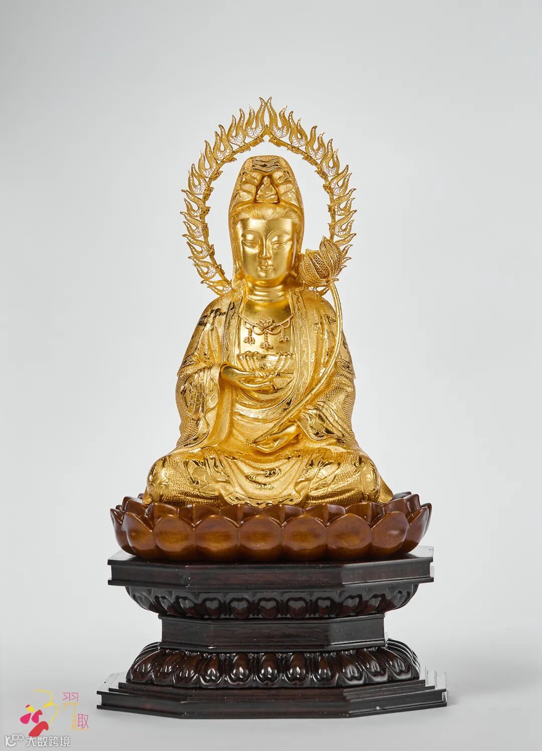 花丝镶嵌,是一门传统悠久的中国传统手工技艺,主要用于皇家饰品的制作。为“花丝”和“镶嵌”两种制作技艺的结合。錾刻则是利用金、银、铜等金属材料的延展性,通过錾子等工具,在金属材料表面敲打出千变万化的浮雕图案。本件作品由中国工艺美术大师程淑美制作,作品观音菩萨手持莲花端坐于莲花台上,人物比例协调,法相端庄慈祥,是一件不可多得的艺术珍品。