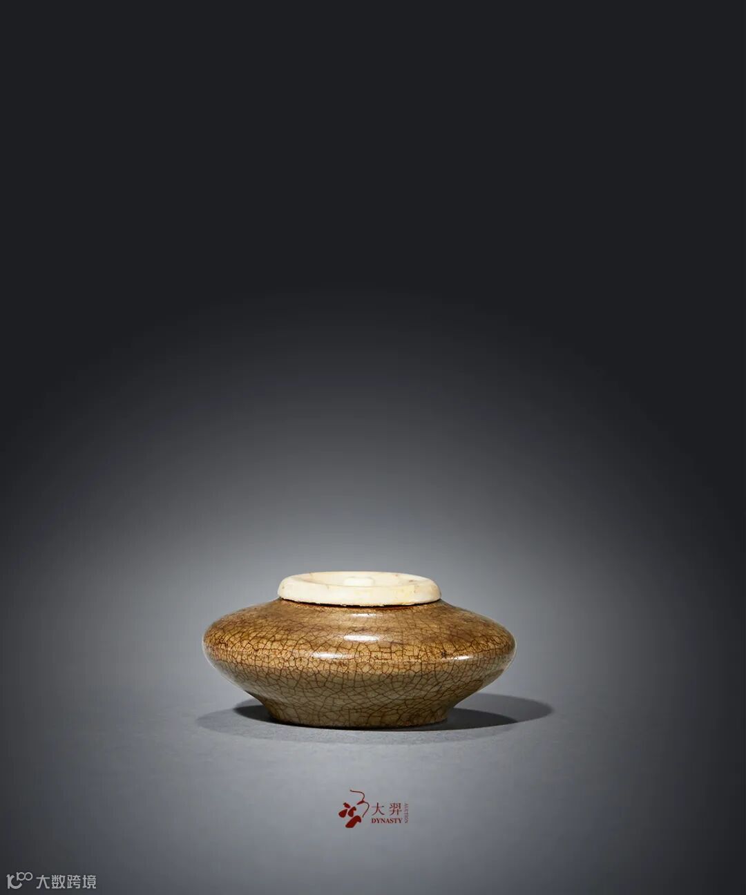 拍品造型小巧,醇厚古拙,器身满施仿哥釉,釉质肥厚,冰凉柔滑,釉面布满开片,自然且错落有致,别具一格。