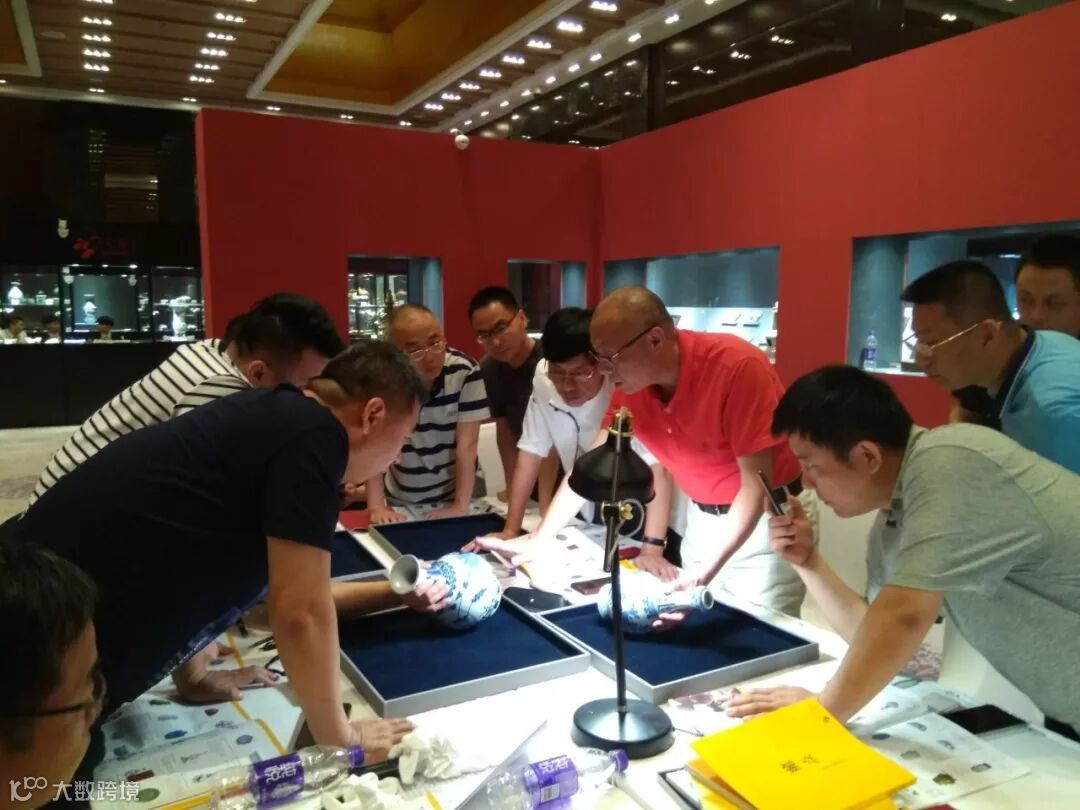 6月2日,国内知名的鉴定培训团队【鸿观收藏】团队和会员,一起来到了大羿2019春拍的预展现场。当晚在预展清场之后,徐鸿老师和会员在舒适安静的空间内,一件件的讲解、点评、上手这里精美的瓷器。同时,我们为鸿观收藏的团队准备了精美的茶点和夜宵,为每一位客人提供细心诚挚的服务是大羿一直以来坚持的宗旨。