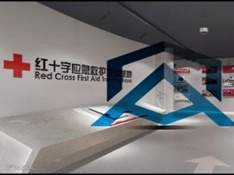 色彩设计:社区展厅色彩以蓝色为主,点缀着红黄色调在场景内展示。