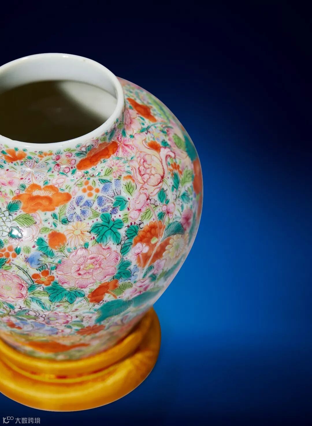 清乾隆 粉彩百花不落地罐 局部